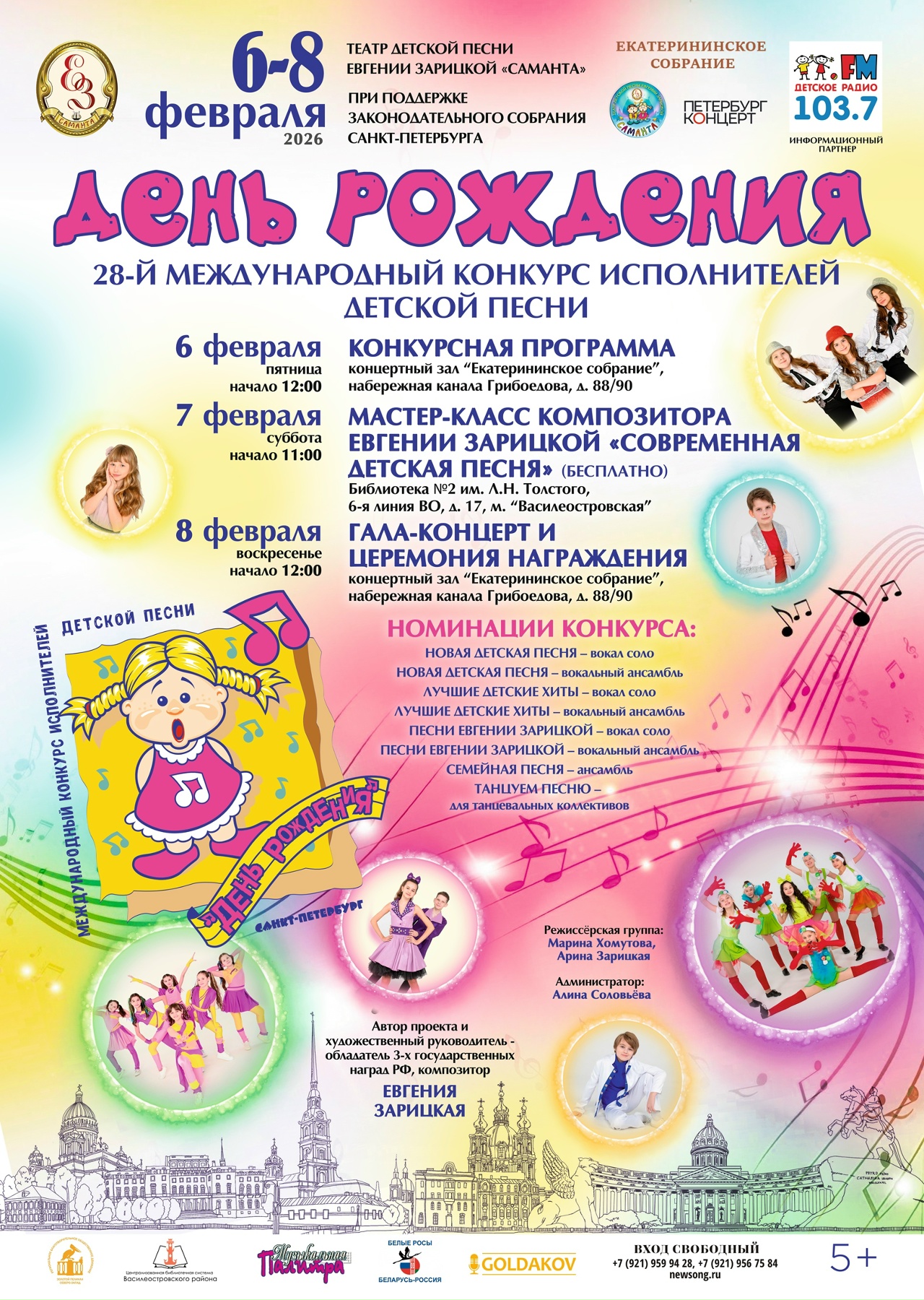 С радостью сообщаем, что театр детской песни Евгении Зарицкой «Саманта» объявляет дополнительный набор и открывает свои двери для новых участников! Мы приглашаем мальчиков и девочек от 5 до 14 лет присоединиться к нашему дружному коллективу, где каждый сможет раскрыть свои творческие способности и найти новых друзей. Театр детской песни Евгении Зарицкой «САМАНТА» Академия талантов Санкт-Петербурга.